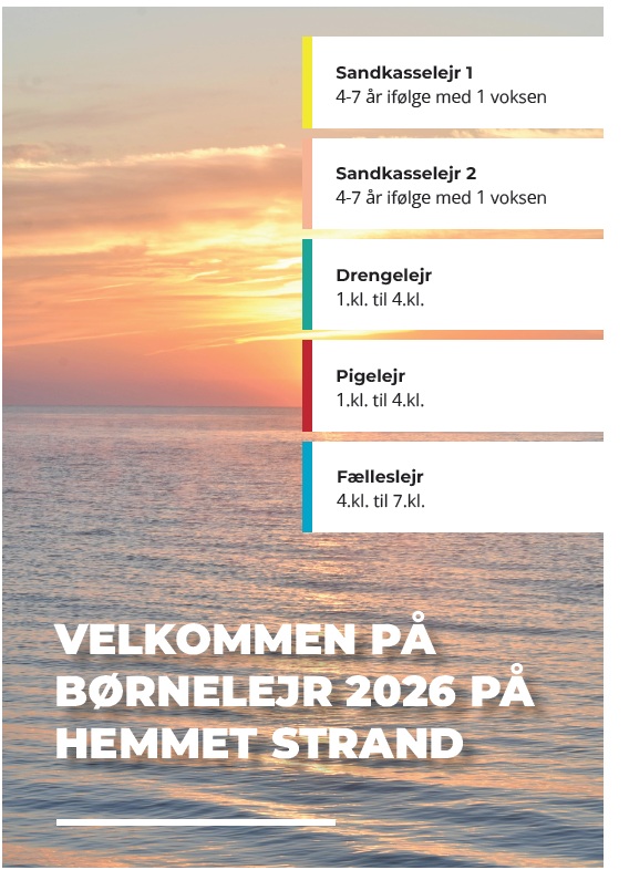 Sommerlejr 2026 Så er programmet for sommerlejre på Hemmet Strand kommet. Se mere ved at klikke på billedet herunder.Tilmelding åbner 15. april 2026!